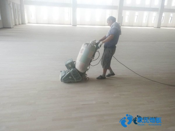 那就是體育木地板可以翻新二次使用。對體育木地板翻新,成本遠(yuǎn)遠(yuǎn)低于更換木地板,且工時(shí)較短。體育木地板翻新為客戶節(jié)省了很錢。體育木地板翻新的主要原理是使用打磨機(jī)將木地板表面的劃痕、污漬打磨掉,然后重新上漆、劃線。歐氏運(yùn)動(dòng)木地板工程師,翻新前對運(yùn)動(dòng)木地板進(jìn)行檢查。確定木地板的磨損程度,選用相應(yīng)的打磨工具。根據(jù)運(yùn)動(dòng)木地板劃痕密集程度及深度選擇砂帶進(jìn)行打磨,使表面光潔。打磨深度視地板磨損情況來定,一般范圍固定在0.5mm--2mm之間。運(yùn)動(dòng)地板翻新,將膩?zhàn)臃酆偷匕宸勰┱{(diào)和成與地板顏色相同的膩?zhàn)?。對寬度不超過2mm的縫隙或其他小缺陷進(jìn)行修繕。使用拋光機(jī)對運(yùn)動(dòng)木地板進(jìn)行拋光,并使用吸塵器對地板進(jìn)行清理。要求木地板表面無任何灰塵。